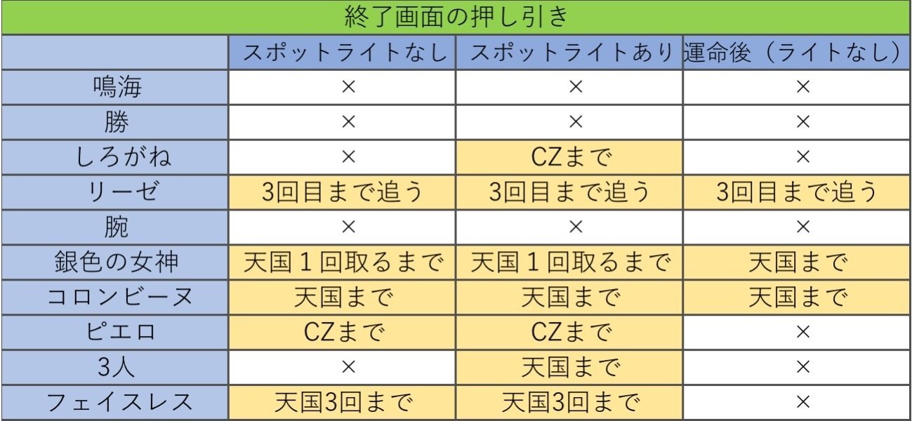 ※運命の一劇後スポットライトありの場合は天国抜けるまでフォロー