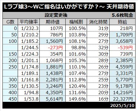Lラブ嬢3 天井期待値