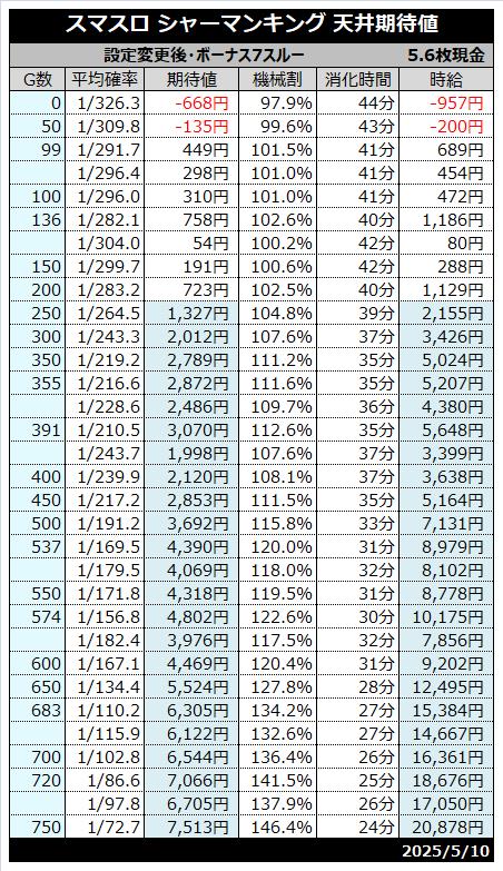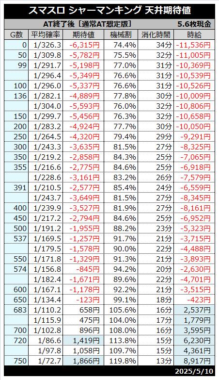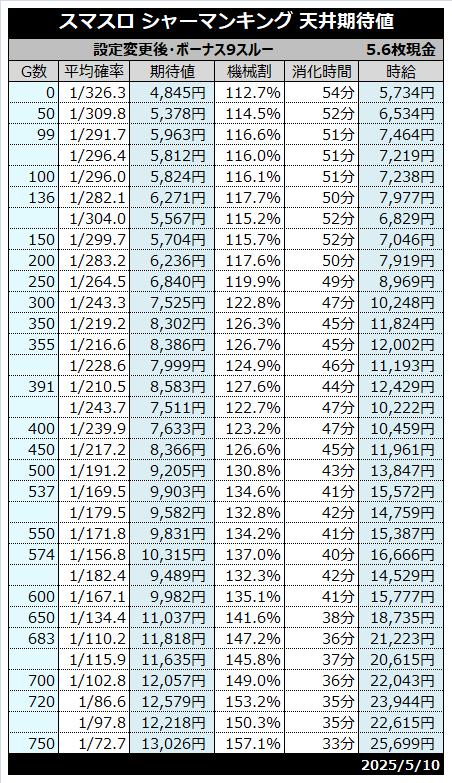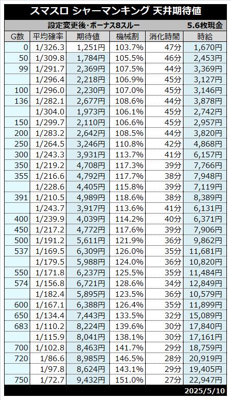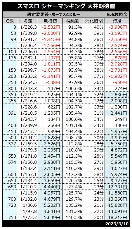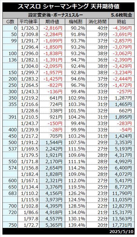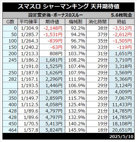| 天井 | 800G (シャーマンボーナス当選) |
