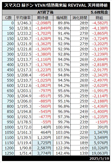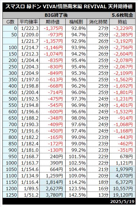緑ドン VIVA!情熱南米編 REVIVAL 天井期待値